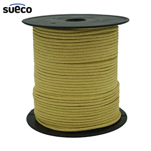 Product Details Attribute Value Material P-aramid Filament yarn 100% Weave Style Braid Color Yellow Max Temperature 250°C Diameter 4mm Beaking Strength 6,000N Length 100M/ROLL - P-aramid Rope 5Φ